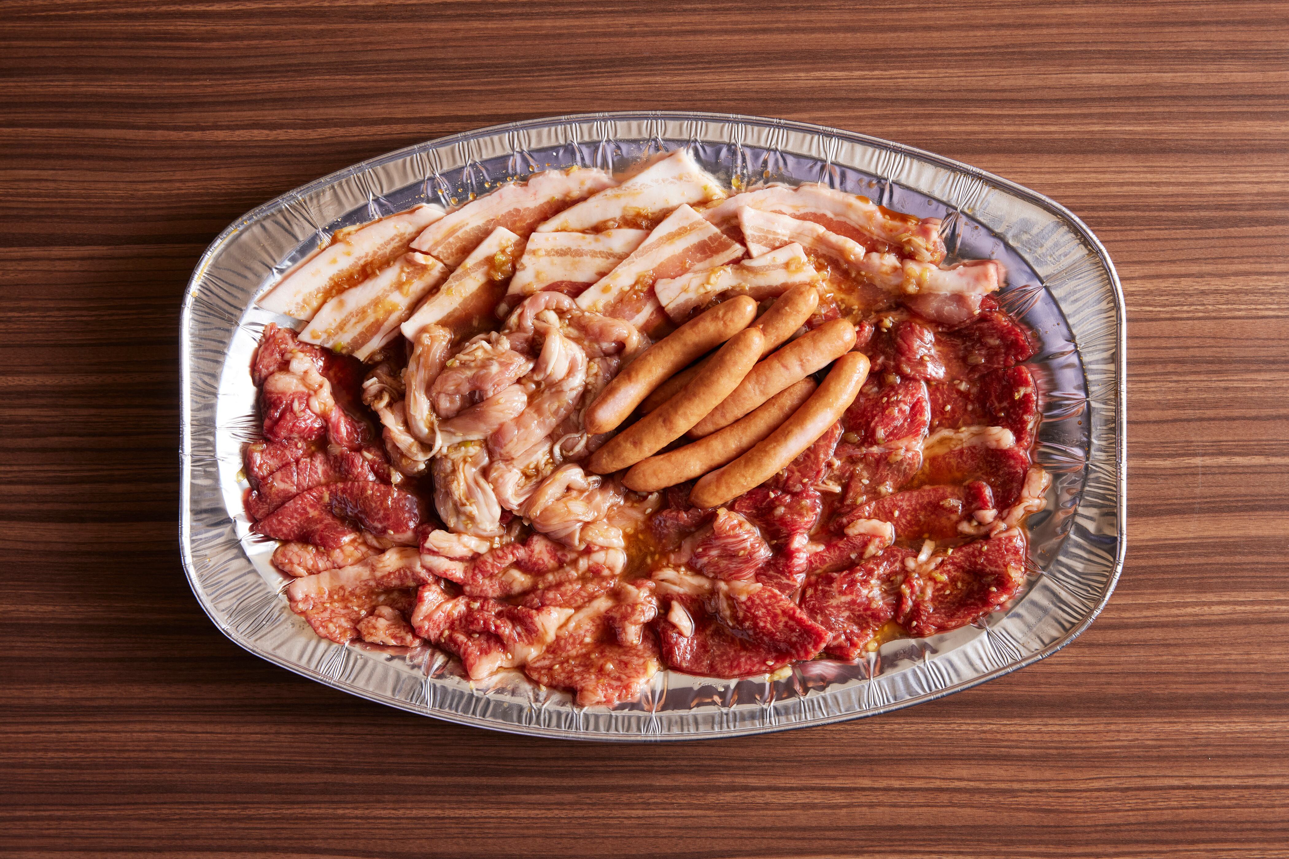 「カルビ屋大福 柏の葉店」の人気メニューを盛り込んだBBQセットを、お家で気軽に楽しめるセットになっております。
